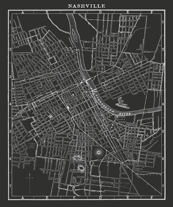 Nashville Map : Large Black and White Vintage Nashville Map Etsy