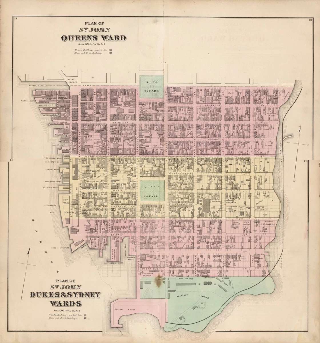 1875 Atlas SAINT JOHN COUNTY CITY NEW BRUNSWICK maps old PLAT LAND