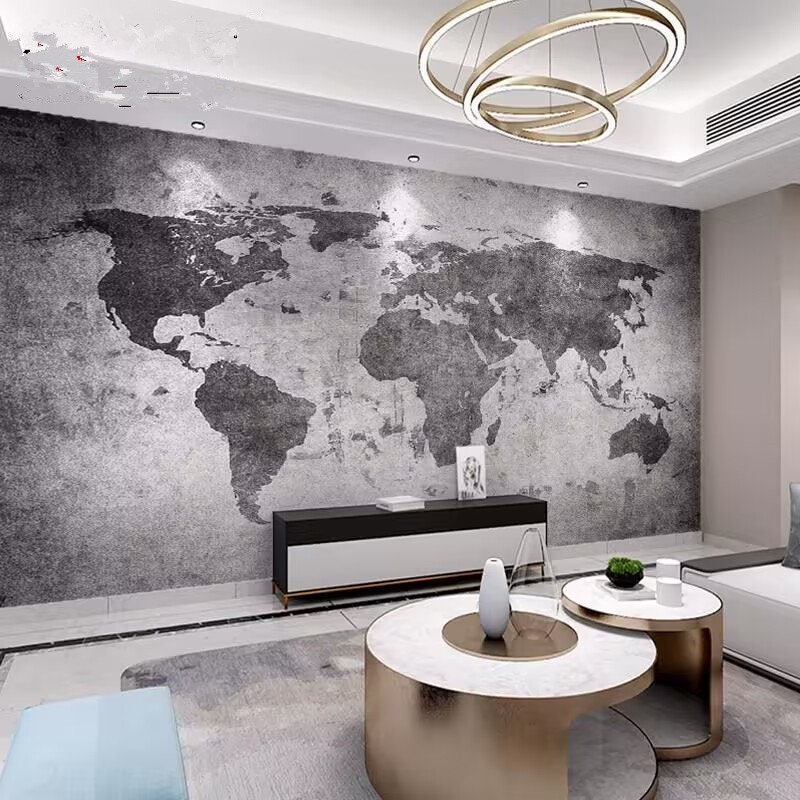 Nordic Gray Background Abstract World Map Wallpaper Wall Mural